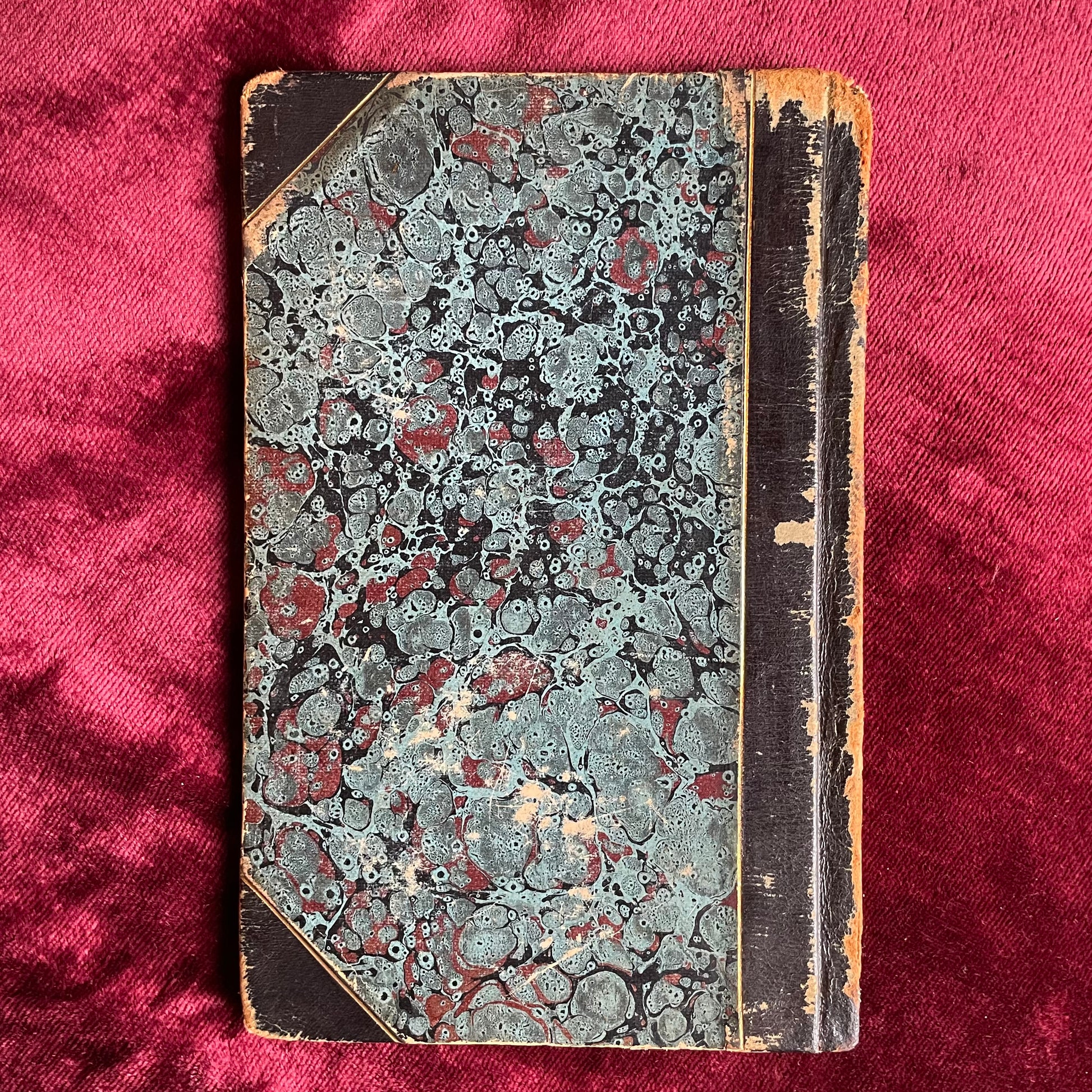 Green marbled cover boards with a leather spine. Condition is good overall with some age tanning to the pages and rubbing around the edges.