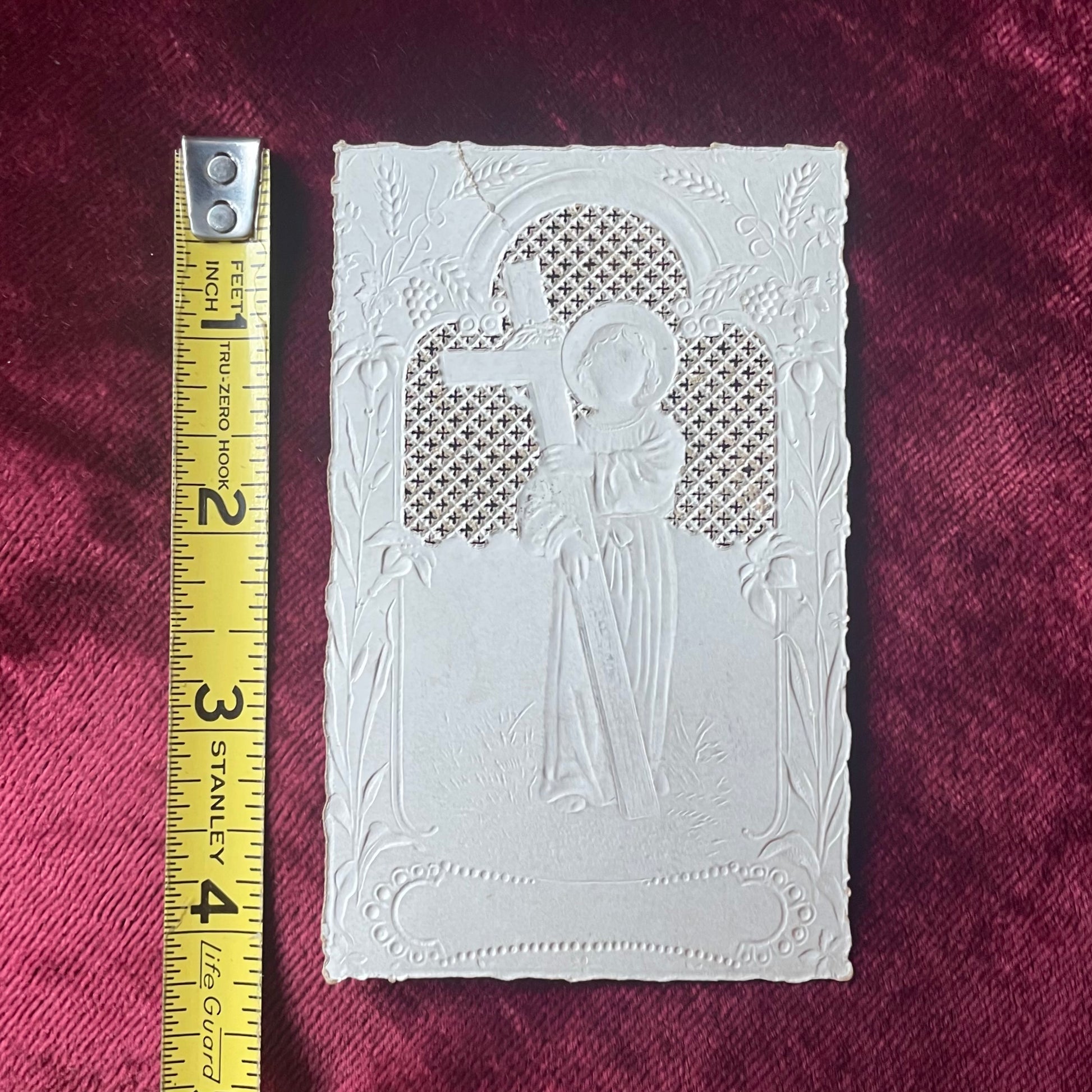 Turn of the century antique holy card, beautifully lithographed and die cut. Refer to photos for size and condition: Good overall with a very slight tear at the top, shown.