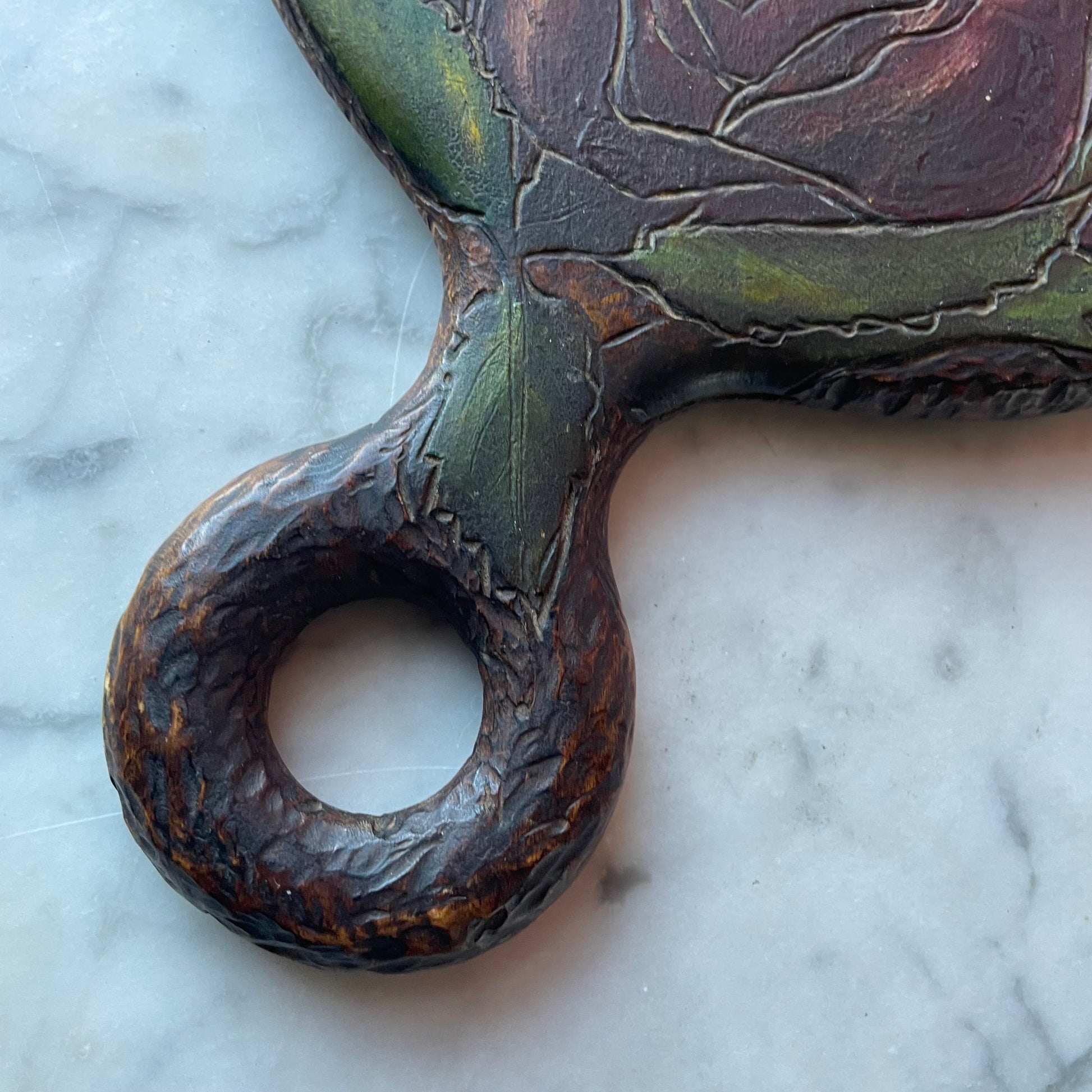 Antique Pyrography Mirror with Roses