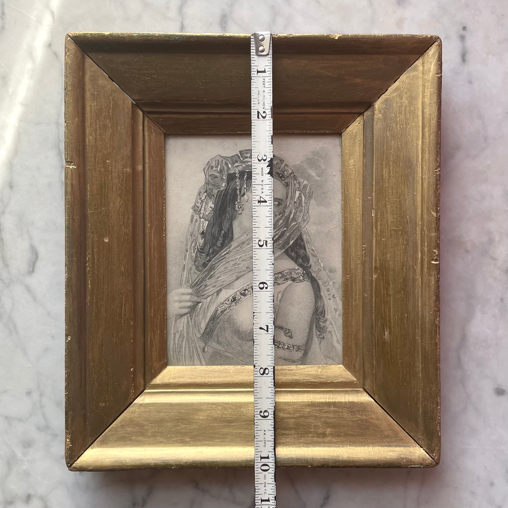 Evocative, mid-19th century black and white engraving of Cleopatra with a wonderful snake bracelet wrapped around her arm. Rescued from a cache of 1860s Shakespeare prints, presented in a gilded wood frame from the same era. Refer to photos for size.