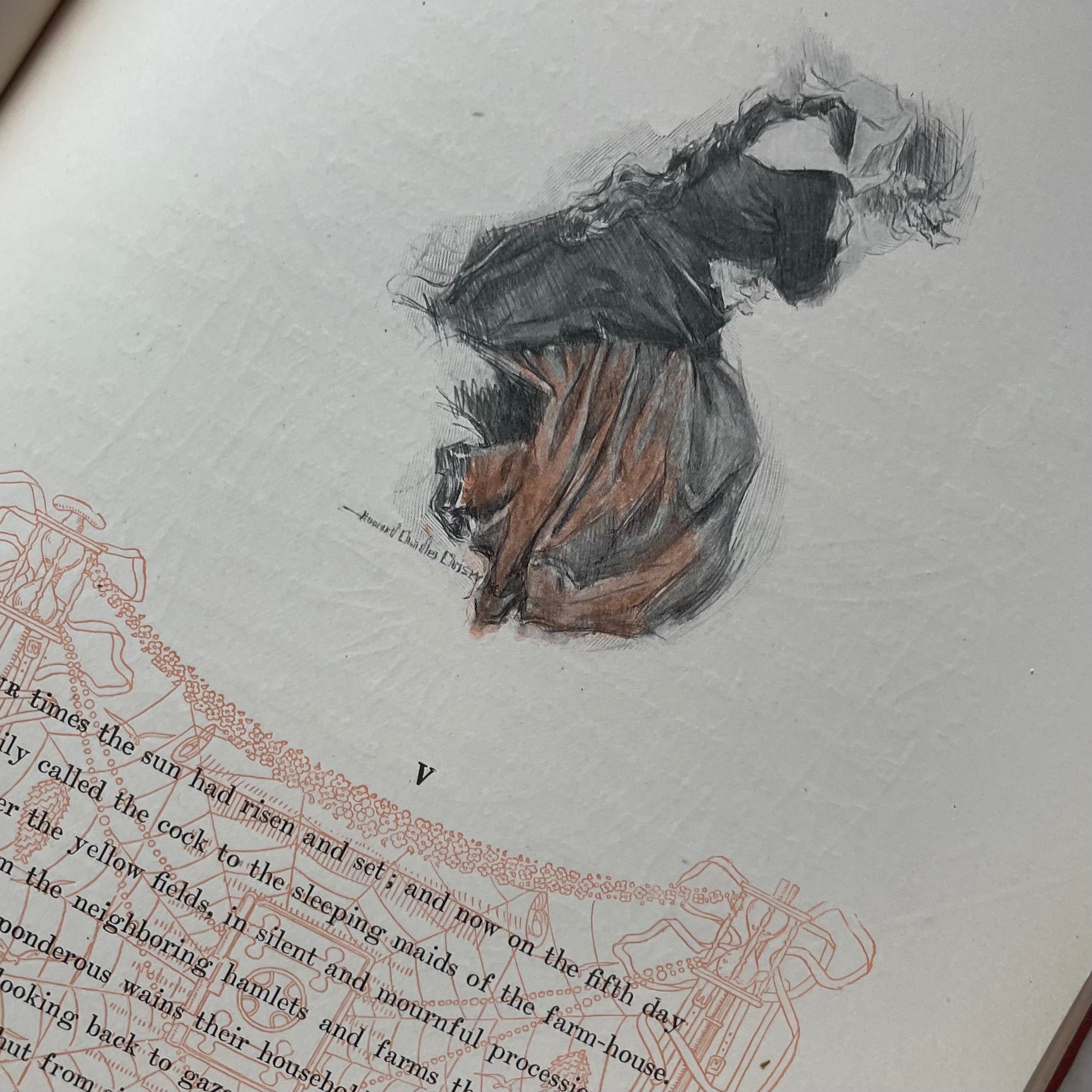 Longfellow’s Evangeline illustrated by legendary Edwardian artist Howard Chandler Christy. Some wear to the covers; otherwise good.