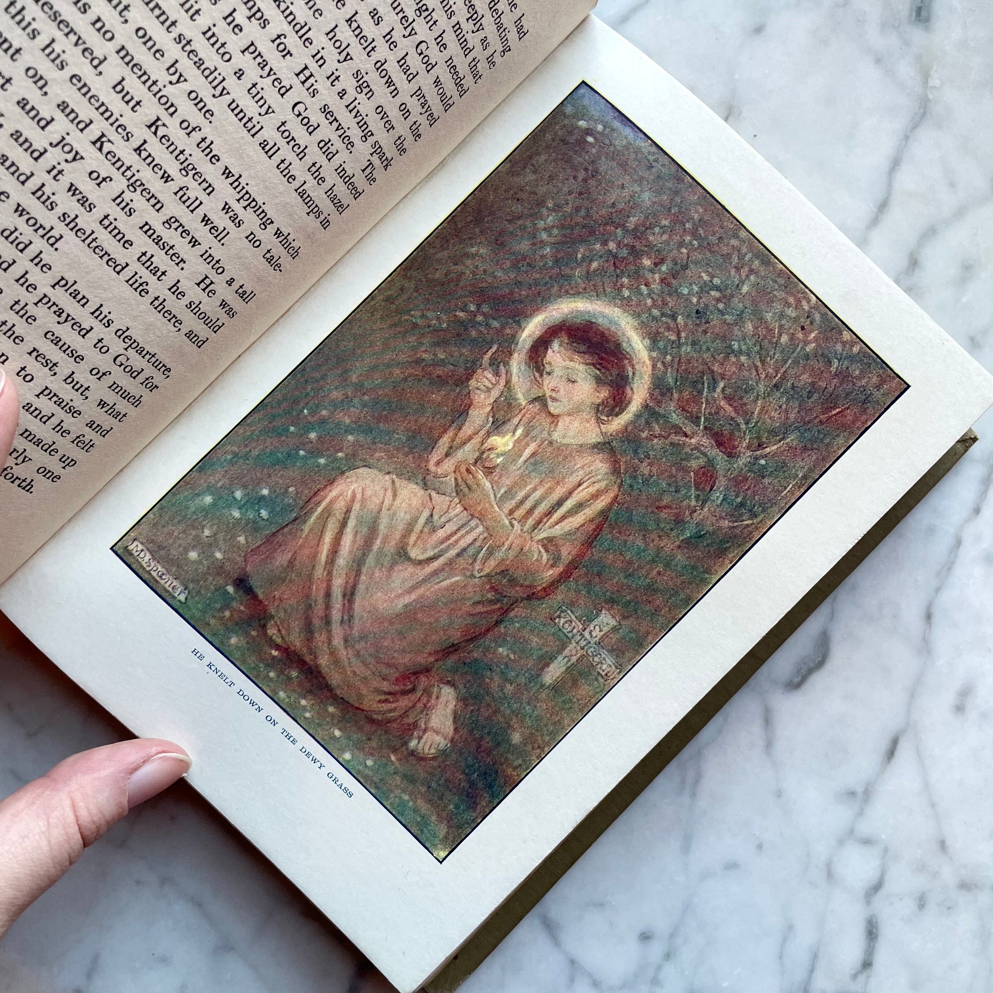 Charming, early 20th century antique book about saints from the United Kingdom told for children, written by Amy Steedman with several full color illustrations by M. Dibdin Spooner. First published in 1912: This one is undated but there is a gift inscription dated 1924; I presume this is a later edition published closer to that date. Condition is good overall with some fading to the lettering on the spine.