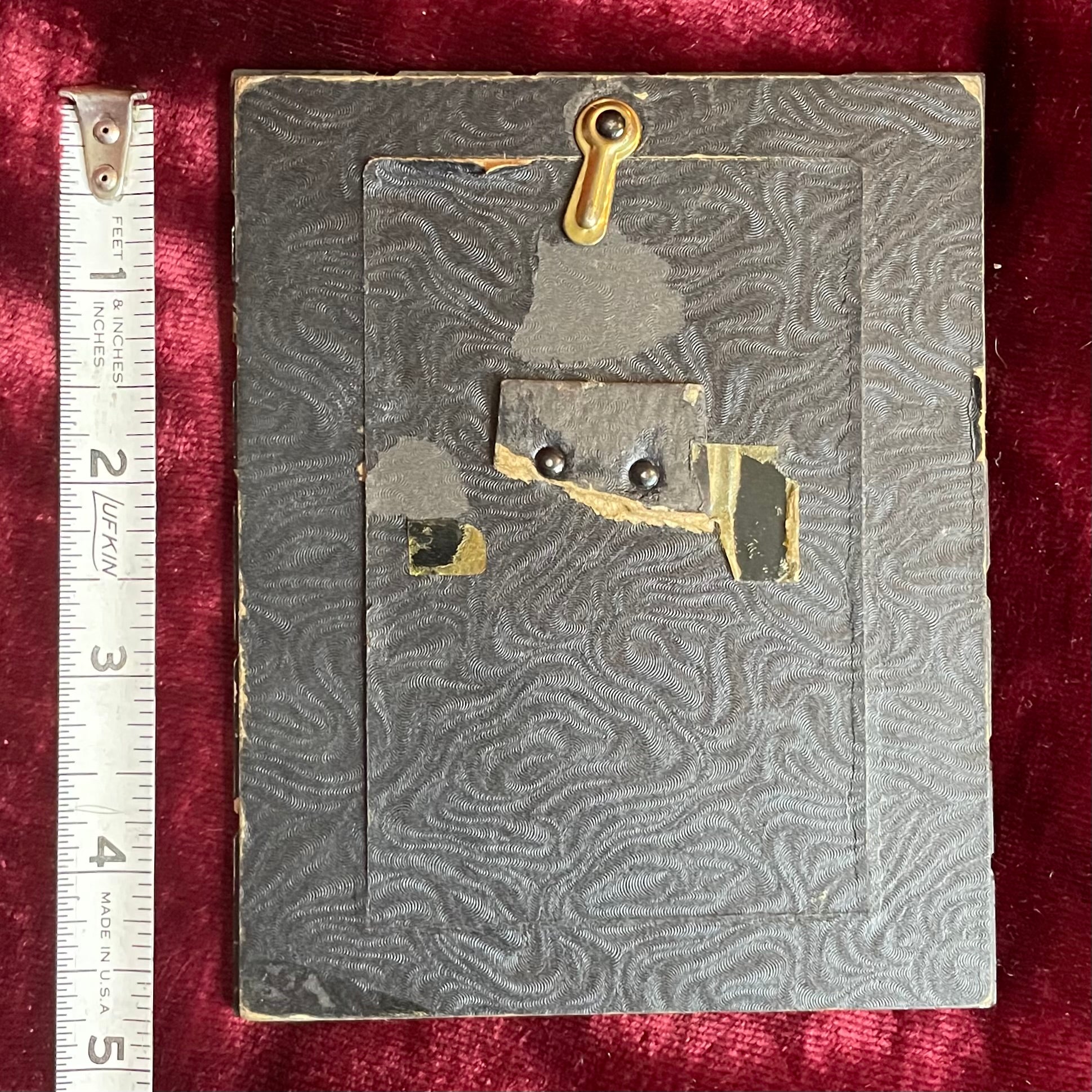 Miniature print of Our Lady of La Salette presented in a bevelled glass mirror frame c. 1930s. Refer to photos for size and condition: Stand is broken; not fitted to hang.