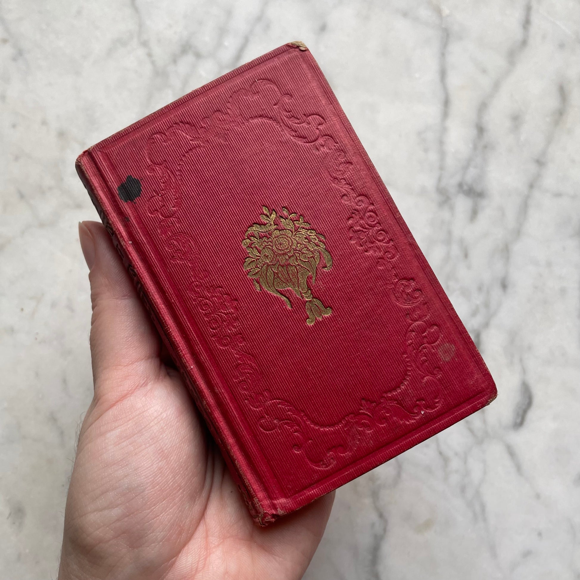 Mid-19th century books with blindstamped cloth covers in this sweet, 4” tall pocket size are some of my favorite antique books to collect. This one is a devotional book with various religious tracts by Payson. Refer to photos for size and condition: Good overall with a small stain on the cover.