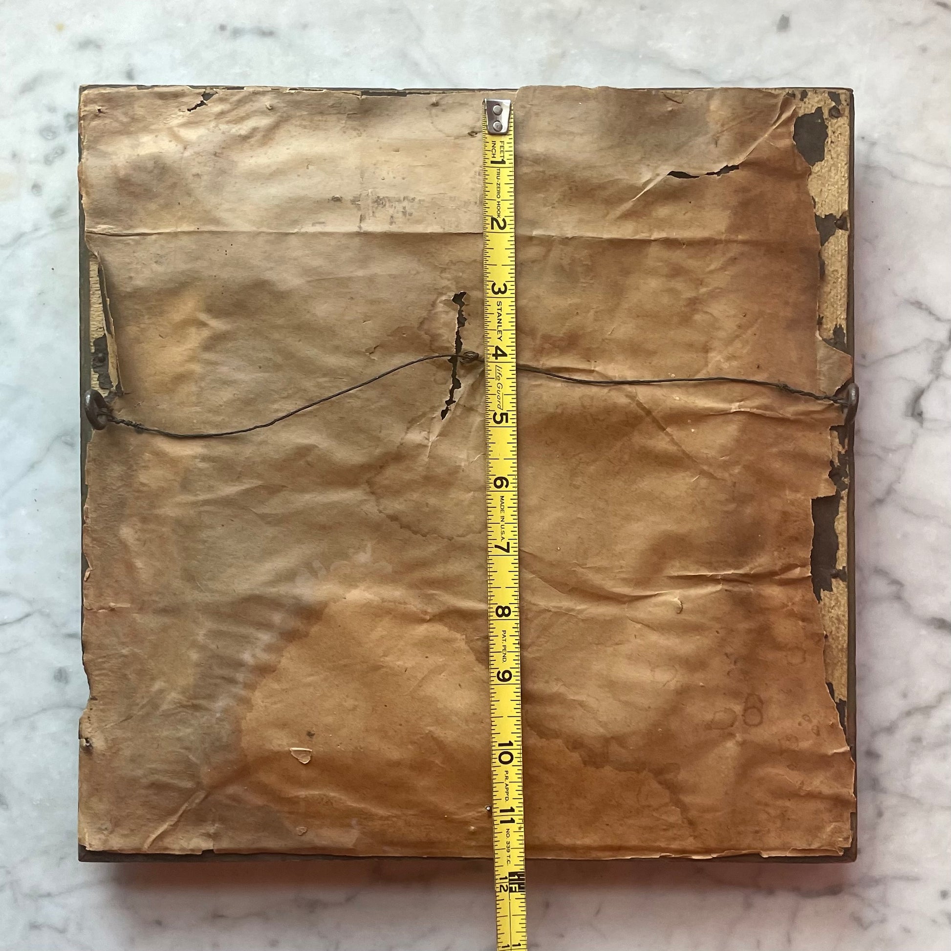 This gorgeous Victorian mirror is a very charming, petite size: Just under 12” squared; ideal if you are shy of wall space! It’s made of heavy, bevelled glass set into a wooden frame with floral gesso with red velvet center. Condition is very good: Mirror is a bit cloudy and there is some minor wear to the velvet.