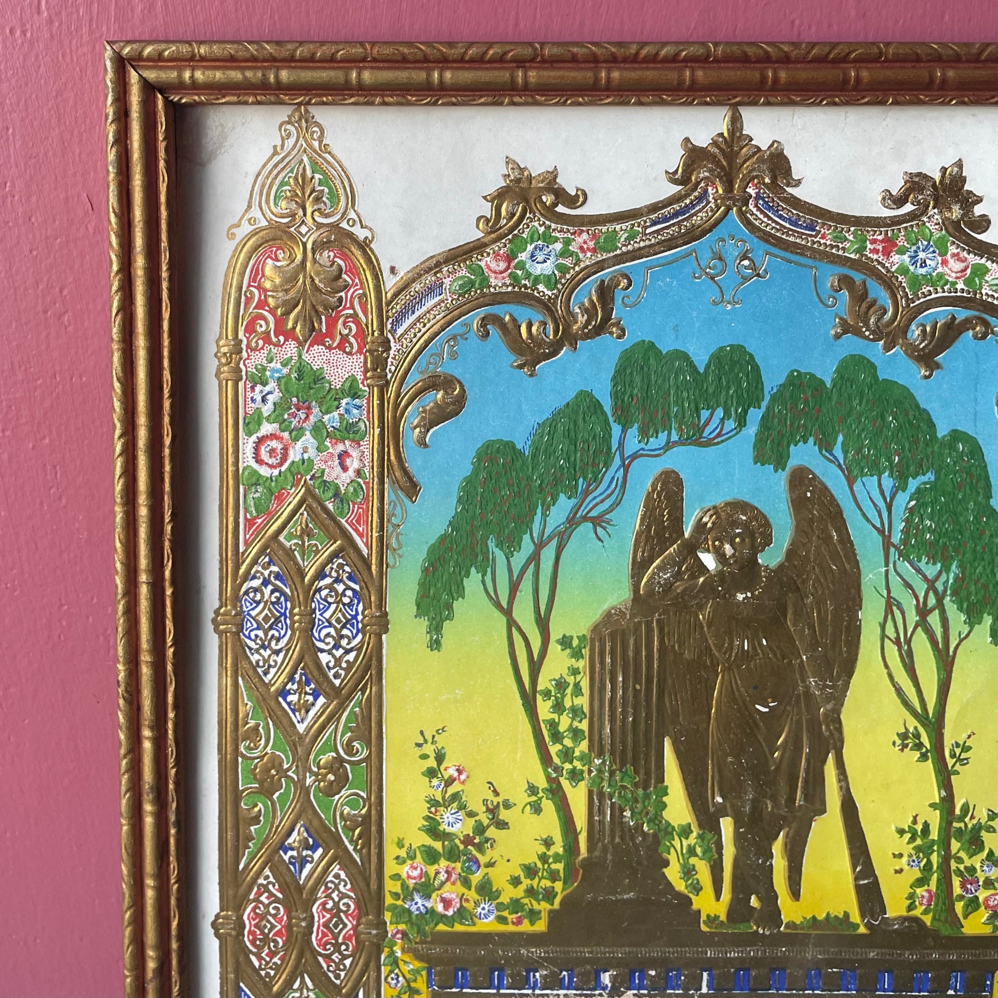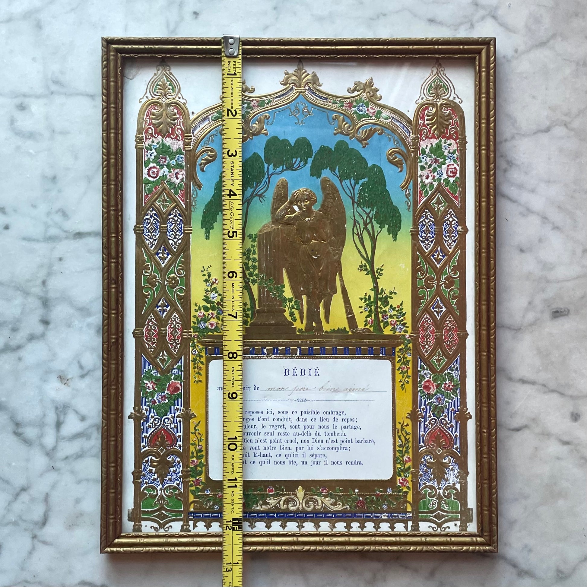“Dedicated to the memory of my beloved father.” 🥀 This piece is really special: The black and white Victorian embossed and die cut memorials I love so much are scarce enough, but I’ve only had one before that was colored. I think it was about 4 years ago and it was also European- I think Belgian or German. In addition to the familiar imagery of willows and the broken column, there’s an extra layer of symbolism here through color: A poignant sunset offset by the gold Dresden paper. Translation: